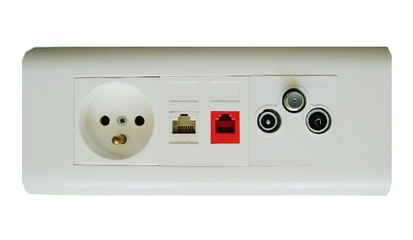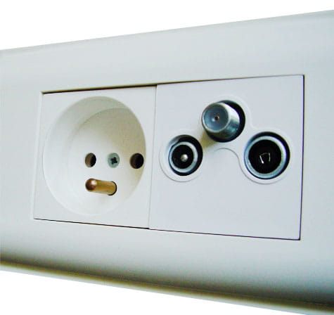 gdy w systemie modularnym 45 x 45 mm nawet 6, ponadto złącza telefoniczne i komputerowe zajmują tylko pół modułu, więc liczba uzyskanych funkcji może być jeszcze większa. Dodatkową zaletą tych gniazd jest możliwość montażu w rozbudowanych systemach kanałów i listew, szczególnie popularnych w instalacjach biurowych