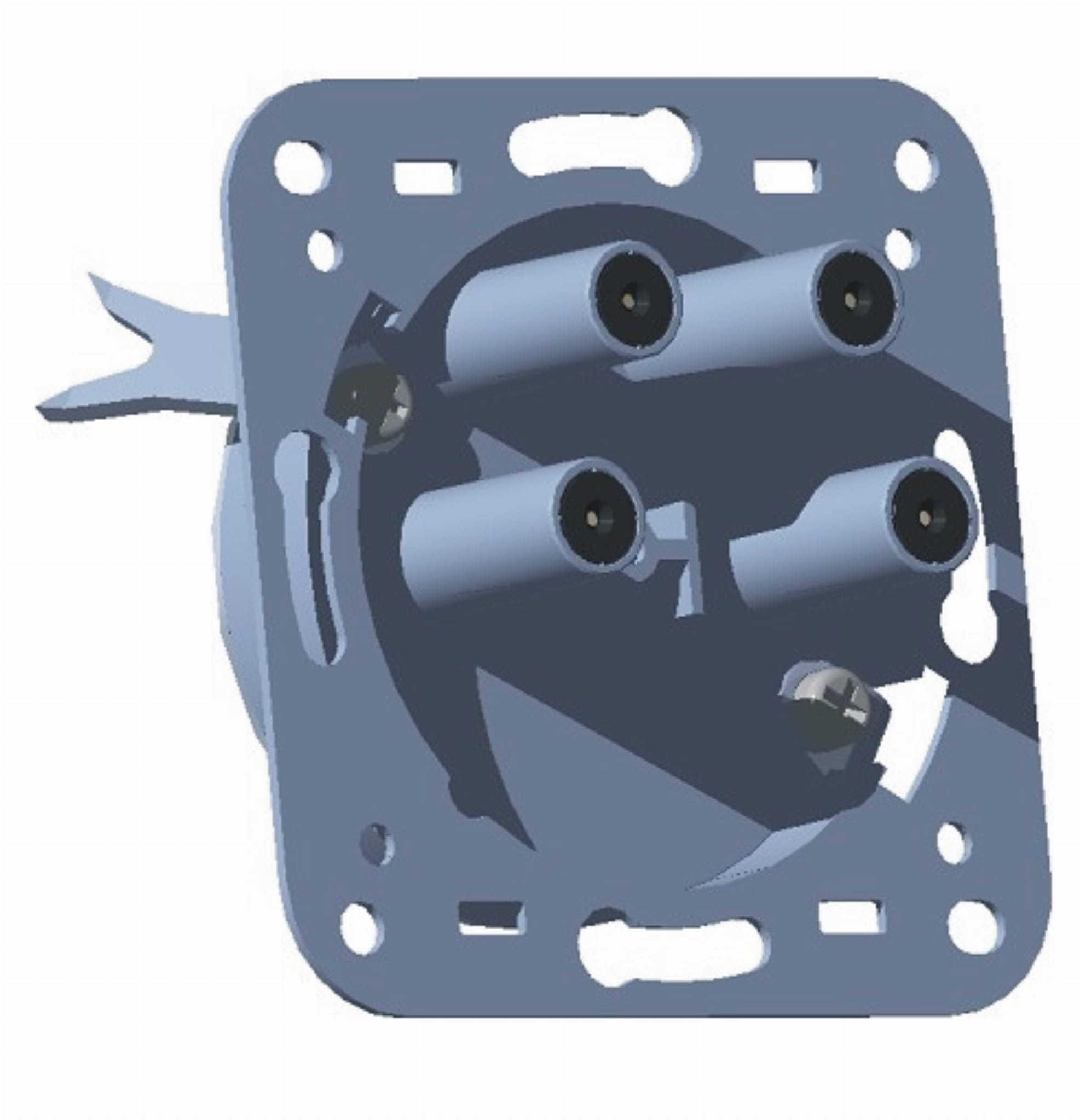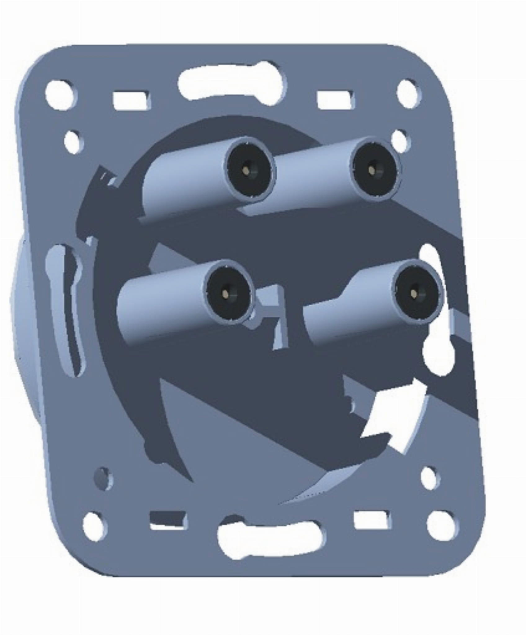 Gniazdo serii Q (korpus tradycyjny OC8 z obcinaczką i stykiem nożowym na wejściu), 2-wejściowe, 4-wyjściowe.