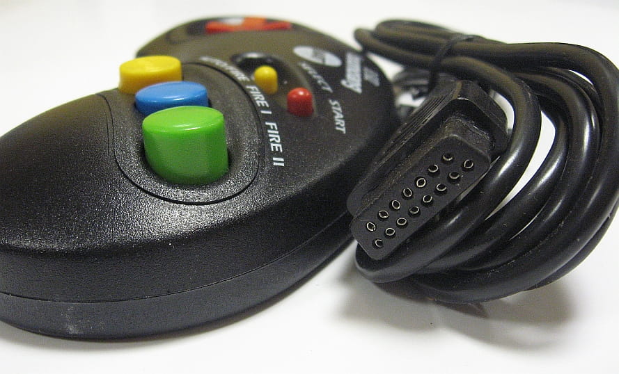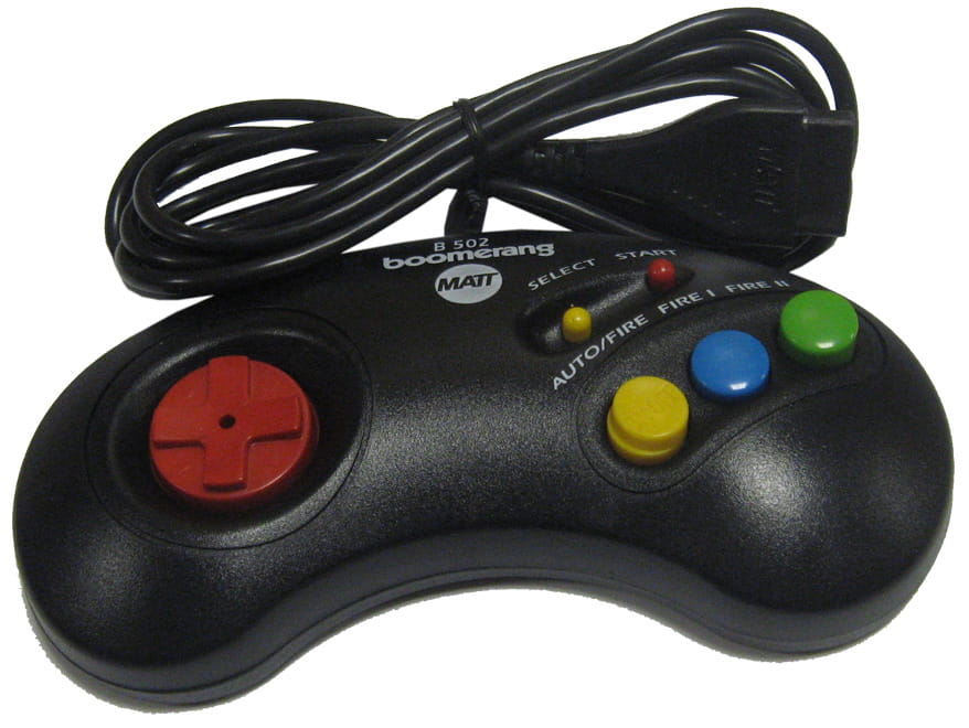 Joypad posiada przyciski z funkcją select i start, przycisk do zmiany funkcji (ogień pojedynczy fire na ogien ciągły - autofire) oraz dwa przyciski fire I i II.