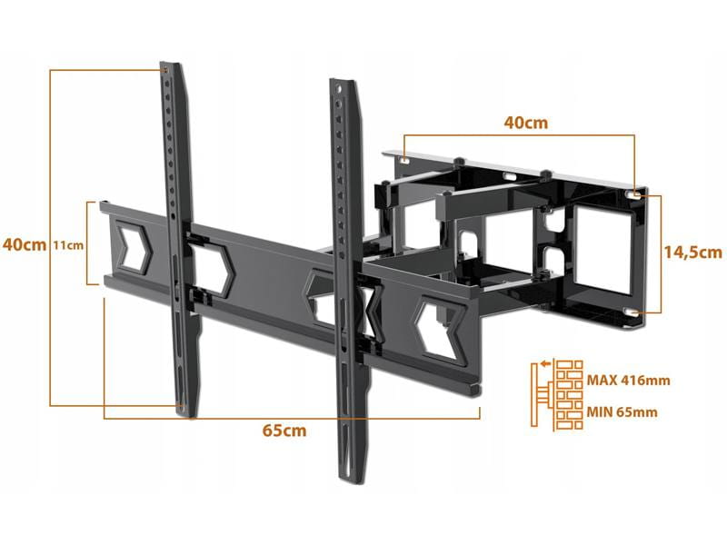 | Odległość TV od ściany | 65 - 416mm |