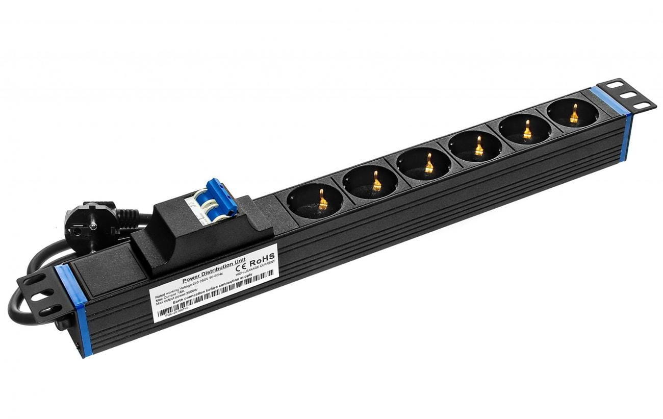 Listwa zasilająca do szafy RACK 19' 6 gniazd 1U + zabezpieczenie 2P
