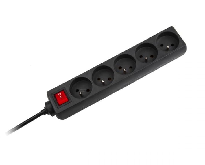 Przedłużacz sieciowy Rebel czarny 5 gniazd z przełącznikiem, 3m