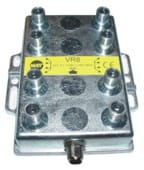 Rozgałęźnik cztośmiokrotny VR 8 przeznaczony zarówno do sieci CATV, jak i małych instalacji indywidualnych. W wykonaniu standardowym posiada blokadę napięcia zasilającego na wejściu do 500VDC.