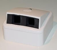 Skośne Przyłącze abonenckie SPA-ZZ posiada dwa kształtowe otwory umożliwiające obsadzenie złączy typu KEYSTON.Przyłącze to wykonywane jest w wersji podtynkowej (posiada łapki rozpierające pozwalające na montaż w puszkach instalacyjnych starego typu), natynkowej (wtedy bez łapek) lub uniwersalnej (wersja natynkowa lecz wyposażona dodatkowo w łapki rozpierające pozwalające na zastosowanie przyłącza także w wersji podtynkowej).