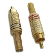 Wtyk metalowy RCA Chinch RCA z odgiętką-sprężynką, lutowany wykorzystywany w przewodach do sprzętu Audio/Video.