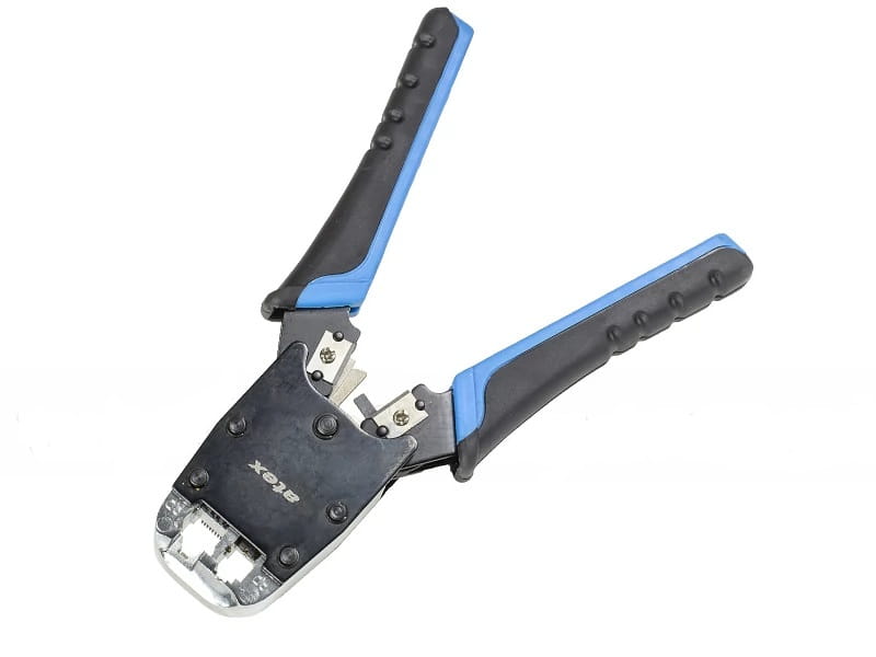 Narzędzie umożliwia zaciskanie wtyków komputerowych RJ45 i telefonicznych (RJ11, RJ12), zdejmowanie izolacji oraz obcinanie nadmiaru przewodu. Czołowe zaciskanie zapewnia równomierne dociśnięcie wszystkich styków.