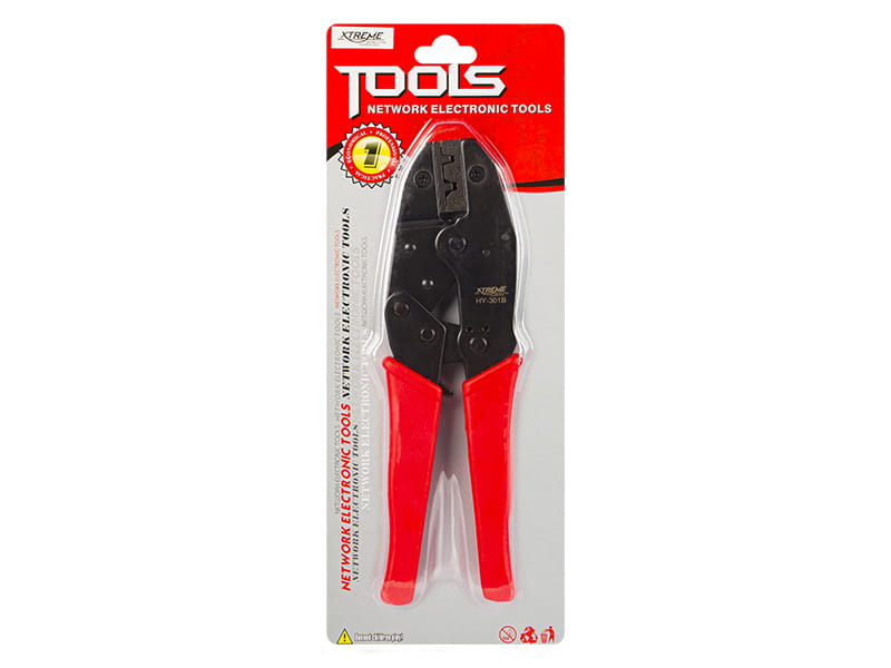 Praska konektorów marki XTREME to narzędzie służące do zaciskania złączy konektorowych izolowanych i nieizolowanych z funkcją blokady i regulacji nacisku. Przyrząd wykonano z metalu a każdy element został idealnie spasowany co sprawia że mamy gwarancję poprawnego zaciśnięcia konektorów. Rączka pokryta jest tworzywem które zapewnia pewny i stabilny chwyt. Narzędzie to jest niezbędne do montażu końcówek kablowych, a jego prosta budowa sprawia, że urządzenie jest idealne do użytku domowego jak również w profesjonalnym warsztacie.