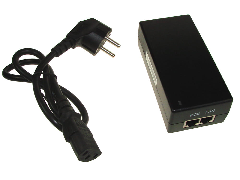 Zasilacz zintegrowany z adapterem PoE dla sprzętu zasilanego 48 V (np. RouterBoard RB600, RB800).